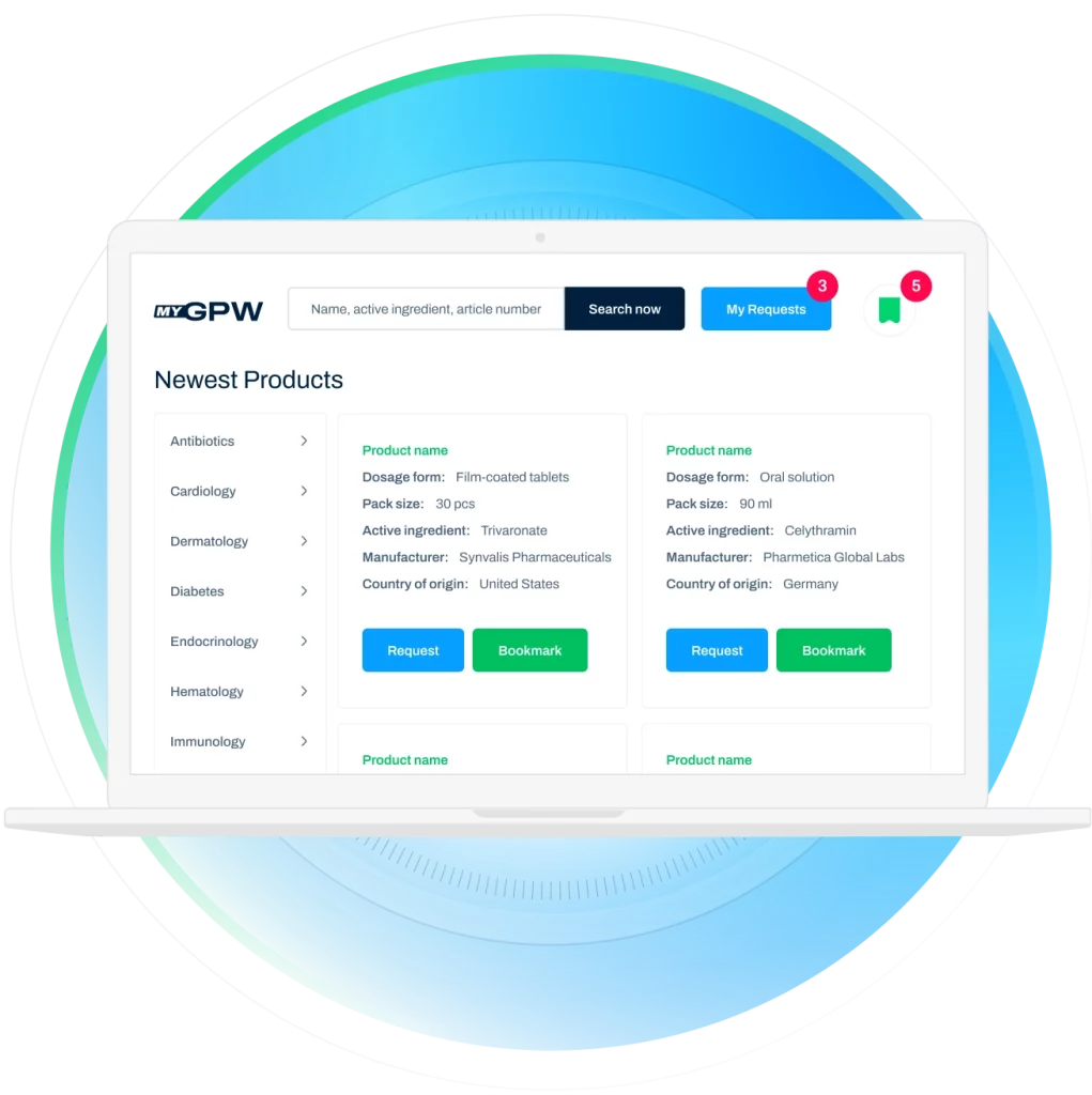 MyGPW वर्तमान GPW पोर्टफोलियो तक आपकी व्यक्तिगत पहुँच है, जो आपको शीघ्रता और आसानी से उत्पाद की उपलब्धता की जाँच करने तथा पूछताछ करने की सुविधा प्रदान करता है। परीक्षित और दुर्लभ दवाओं को खोजें, संग्रहीत करें और अनुरोध करें – सब कुछ एक सुरक्षित, अनुपालनशील डिजिटल प्लेटफ़ॉर्म पर।